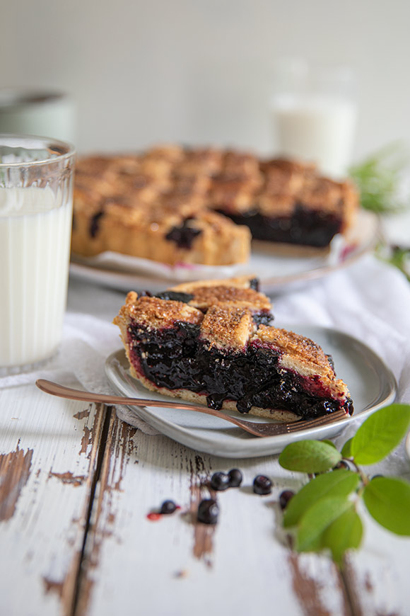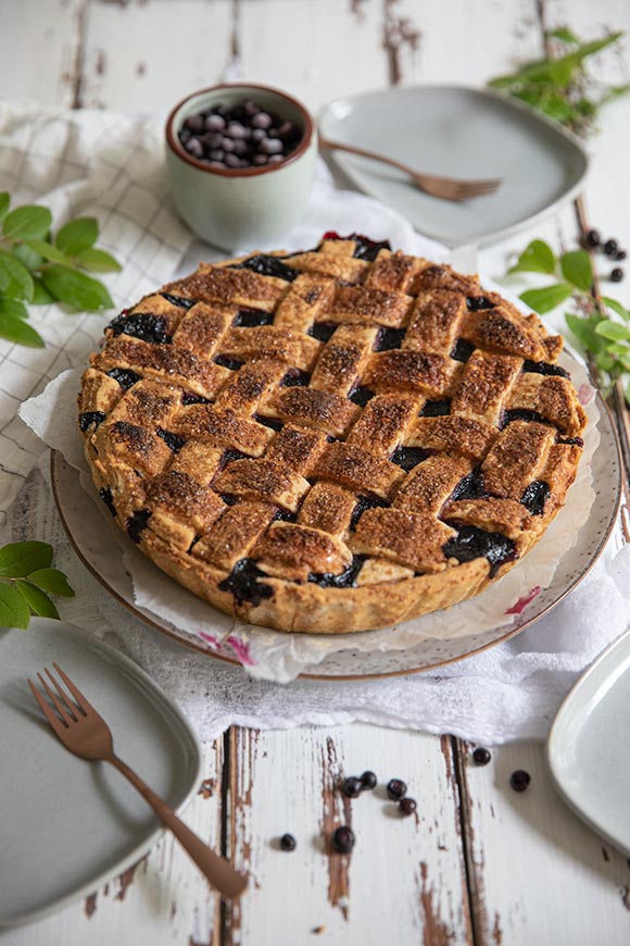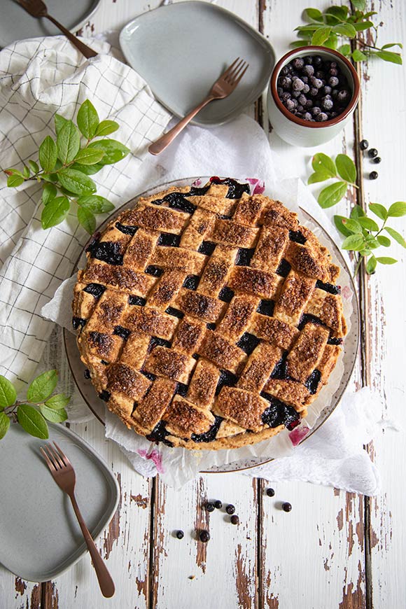 Nam, mustikoita! Metsäretkeilyn ja mökkeilyn tuloksena olen ilokseni huomannut, että mustikat ovat jo ainakin täällä etelässä kypsyneet ihanasti. Keräily on tuottanut juuri sen verran tulosta, että kieli ja huulet on saatu kunnolla sinisiksi, mutta piirakkamarjoihin asti ei tämän poimijan viitseliäisyys ole riittänyt. Mustikkapiirakkaa oli silti saatava ja koska nälkä kasvaa syödessä (ja mustikanhimo maistellessa), päätin tehdä mustikkaisimman piirakan, jonka pystyin kuvittelemaan. Ajatus paksusta kerroksesta ihanan mehevää mustikkatäytettä herkullisen rapean kuoren välissä herautti veden kielelle, joten päätin metsän sijaan suunnata reilusti pakastealtaalle.