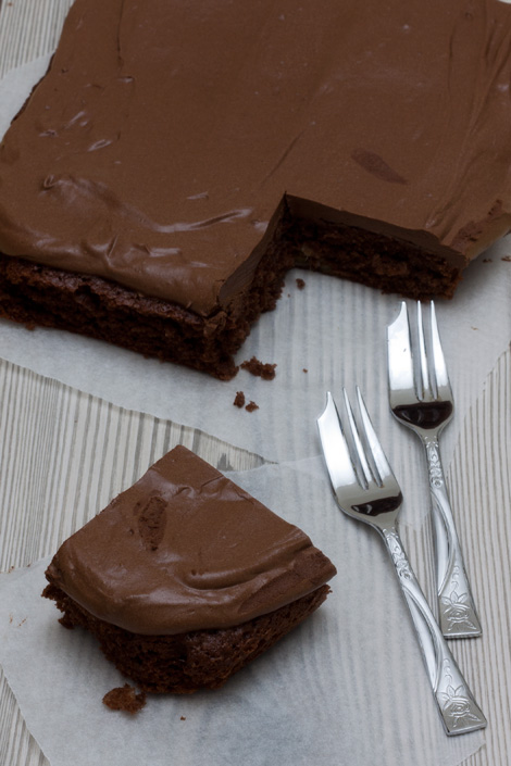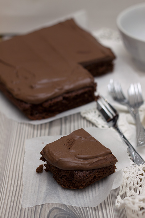 Paista piirakkaa noin 30 minuuttia tai kunnes siihen painettuun testitikkuun ei jää enää raakaa taikinaa. Anna piirakan jäähtyä ennen kuorrutteen levittämistä.