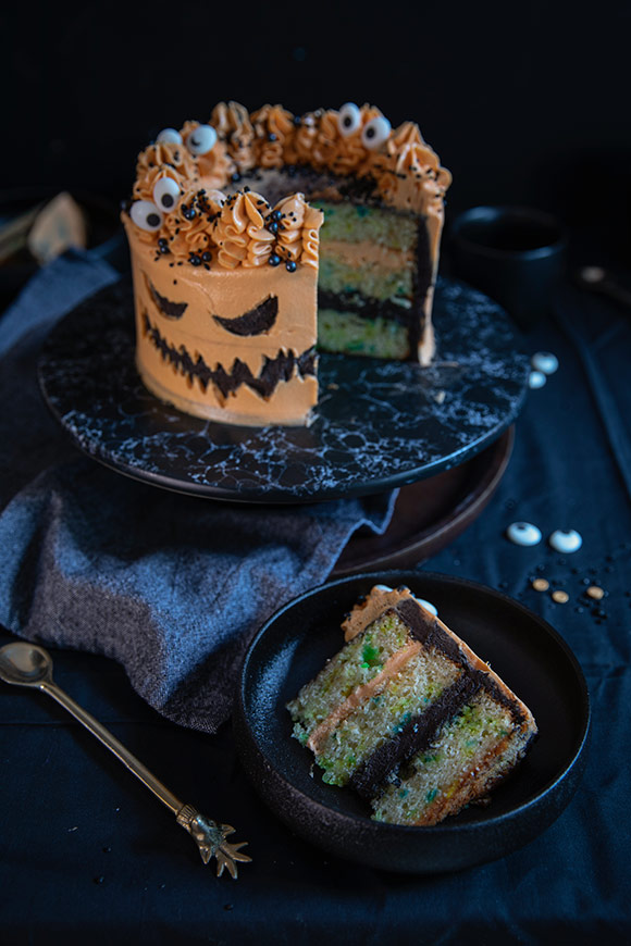Kaiverrettu halloweenkurpitsakakku