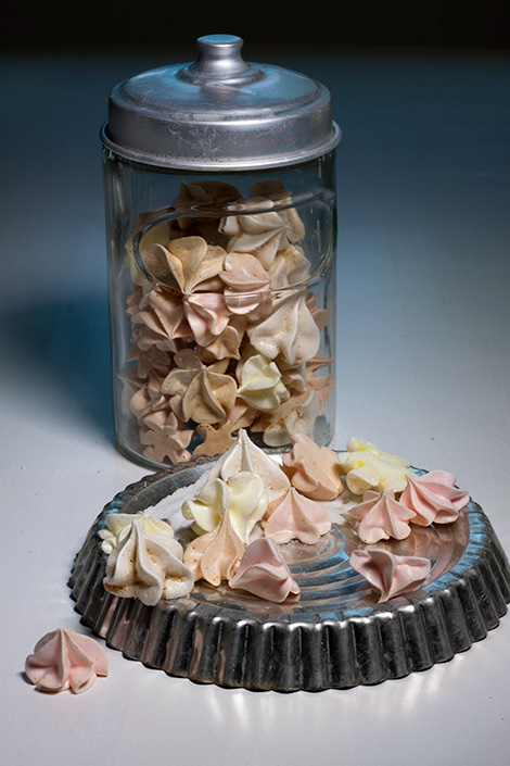 Laita marenkivaahdot pursotinpussiin ja pursota pieniä nokareita pellille. Paista marenkeja noin tunnin verran tai kunnes ne irtoavat nostettaessa helposti leivinpaperista. Vaihda uunipeltien paikkaa paiston aikana muutaman kerran, jotta saat tasaisen paistotuloksen. Säilytä marengit tiiviissä purkissa huoneenlämmössä.