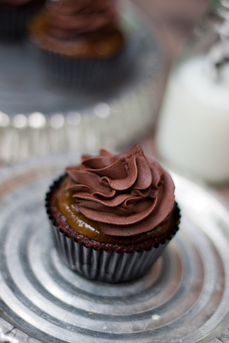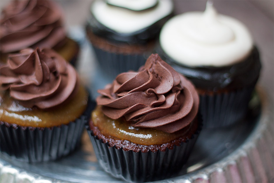 Kuumenna kerma ja kaada se paloitellun suklaan päälle. Anna sulaa ja sekoita tasaiseksi. Jäähdytä kuorrute huoneenlämpöiseksi ja vatkaa se kuohkeaksi vaahdoksi. Jos kuorrute ei meinaa vaahtoutua, laita se hetkeksi pakastimeen kovettumaan ja vatkaa se hieman jähmettyneenä kuohkeaksi. Laita kuorrute pursotinpussiin odottamaan. Levitä jokaiselle kuppikakulle lusikallinen appelsiinimarmeladia ja pursota päälle suklaakuorrutetta.
