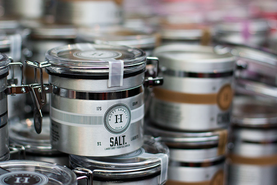 Kun sitten pääsimme Wanhan Sataman messuhalliin sisään, nousi tunnelma entuudestaan. Hallikäytävän molemmilla puolilla oli vieri vieressä herkkuja notkuvia pöytiä. Mustaa kultaa hohti edessämme lähes silmänkantamattomiin. Eri valmistajien standeiltä löytyi lakritsia ja salmiakkia kaikissa olomuodoisssa; hienoja konvehteja, makeisia, jäätelöä, jauheita, rouheita, siirappeja ja uutteita. Ja maistiasia. Siis oikeasti MAISTIAISIA! Viime vuosina monet messut ovat mielestäni huonontuneet maistiaisten saralta. Ihme juttu, sillä niiden takiahan messuille lähdetään. Täällä kuitenkin meno oli kuin paljon puhuttuina ”vanhoina hyvinä aikoina”.