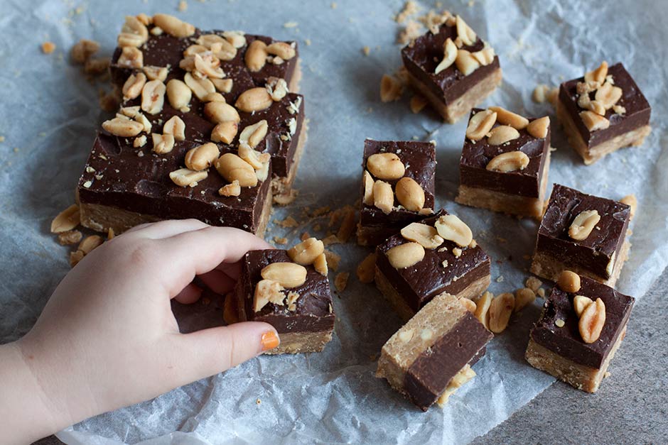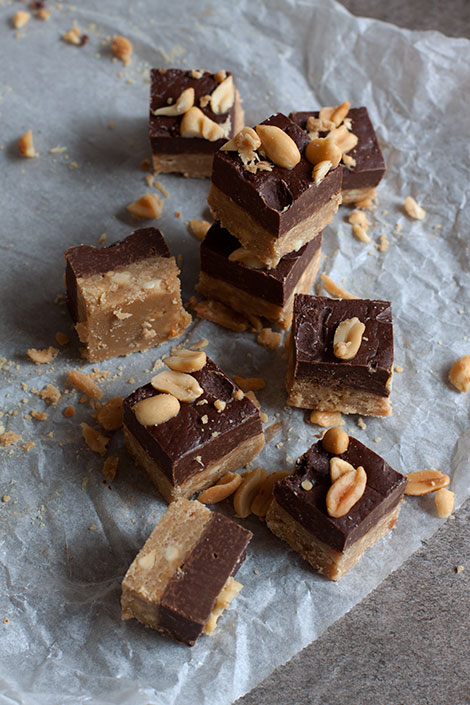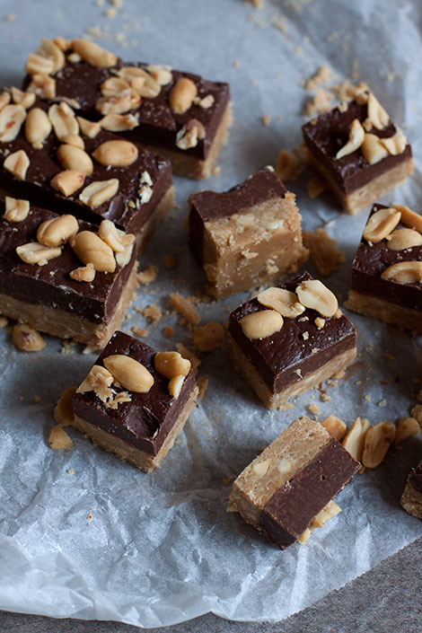 Yleensä fudget ovat vähän liian makeita (vaikka silti niin ihania), mutta tässä maapähkinävoin suolaisuus ja tumma suklaa taittavat makeuden juuri sopivasti. Makeitahan nämä silti tietysti ovat, tuo 7 dl sokeria takaa sen varmasti. Maultaan nämä muistuttavat hieman Snickers-patukoita, jotka kuuluvat ehdottomiin suosikkeihini. Tai oikeastaan ei niinkän ne snickers-patukat, kuin niitä jäljittelevät leivonnaiset. Niitä on tullut tehtyä blogissa aiemminkin, joten jos pidät näistä fudgeista kannttaa ehdottomasti testata myös tätä snickers-jäätelökakkua ja näitä mahtavia whoopie-leivoksia.