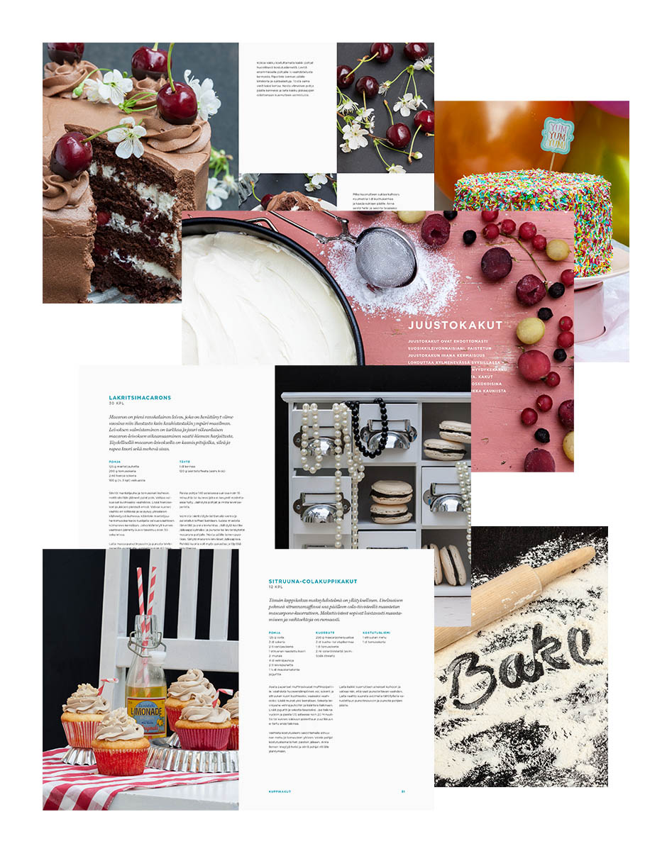 Ensimmäisten kakkublogien löydyttyä aloin tutkimaan reseptejä ja kuvia paljon myös netissä. Perustin oman blogin ja innostuin kirjoittamisesta ja valokuvaamisesta. Aloin seuraamaan monia erittäin visuaalisia leivontablogeja ja rakastuin niihin ja niiden rustiikkiseen ja huolettomaan tyyliin. Vähitellen heräsi haave myös oman kirjan tekemisestä, sillä vaikka suunnaton määrä upeita reseptejä ja inspiroivia kuvia on vain napin painalluksen päässä, mikään ei kuitenkaan voita painettuja leivontakirjoja. Jauhopölyssä ja taikinatahroissa oleva kirja, täynnä omia merkintöjä ja lempireseptit hiirenkorville taitettuna, sisältää muistoja hyvistä hetkistä. Rakastan käpertyä nojatuoliin kahvikupin ja kauniin leivontakirjan kanssa, fiilistellä leivonnaisia ja suunnitella omia reseptejä.
