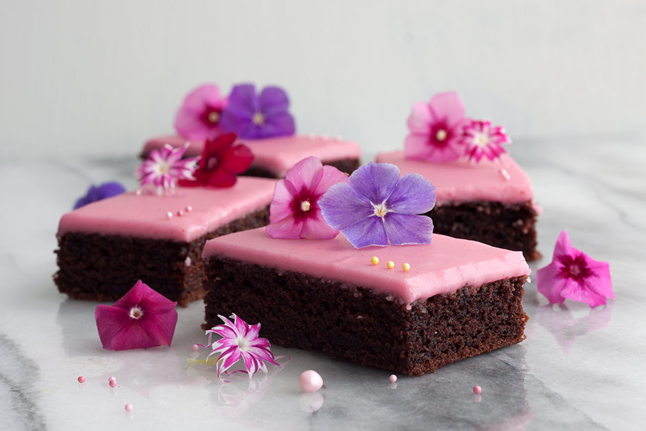 Tyttäreni halusi aloittaa päivän leipomalla kukkakakkua. Kyselin vähän tarkemmin toiveita ja mietittiin yhdessä mitä tehtäisiin. Suunnitelma muuttui kakusta mokkapaloiksi, sillä olen jo pitkään halunnut testata What’s cooking Helsinki tapahtumassa maistamaani mehevää suklaapohjaa johonkin. Railin tekemä pohja jäi ihanasti mieleen, ja suunnittelinkin käyttäväni sitä uudenlaisten mokkapalojen kehitykseen. Sovelsin ohjetta oman kaapin sisällön ja makumieltymysten perusteella, pohjan herkullisuudesta ja mehevyydestä kuitenkaan tinkimättä.