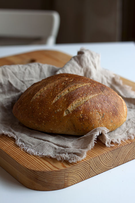 Leivän voi leipoa myös ilman taikinajuurta, käytä silloin levaiiniin 5 g tuorehiivaa sekä 3 1/2 dl vettä ja 4 1/2 dl vehnäjauhoja. Lisää myös varsinaiseen taikinaan 5g hiivaa.