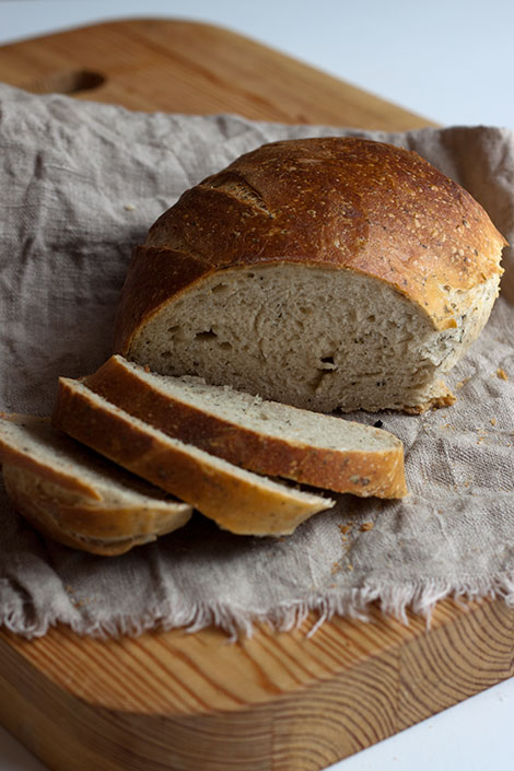 Tästä leivästä tuli oikein kuohkea, vaikka en lisännyt lainkaan leivinhiivaa. Leivän valmistus vie tosin aikaa, mutta hyvin ajoitettuna eri työvaiheet sujuvat helposti. Helpoiten leipominen tuntuu sujuvan kun esitaikinaan tekee esimerkiksi aamulla ennen töihin lähtöä ja töistä tullessa leipoo esitaikinan taikinaksi. Illalla ennnen nukkumaanmenoa voi taikinan vielä pyöräyttää valmiiksi leiväksi, joka saa kohota yön yli jääkaapissa. Aamulla voikin ottaa kohonneen leivän kaapista ja paistaa sen herkulliseksi aamiaiseksi.