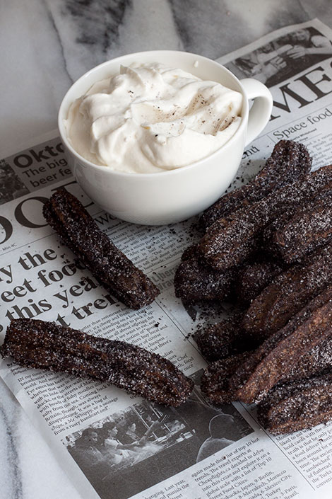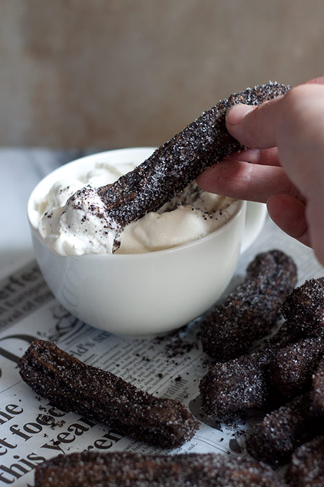 Bongasin herkulliselta kuulostavan oreo-churrojen ohjeen Popsugar.comista jo kuukausia sitten ja olen etsinyt sopivaa tekosyytä testata reseptiä. Churrot ovat olleet kovasti suosiossa, enkä ollut vielä aiemmin koskaan testannut niiden valmistamista. Churro-taikina muistuttaa valmistustavaltaan hyvin paljon perinteistä tuulihattutaikinaa, eli ensin kiehautetaan vesi ja voi. Kuuma seos kaadetaan jauhojen joukkoon, jolloin jauhot hieman kypsyvät. Hetken jäähtyneeseen seokseen lisätään kananmunat puulusikalla kevyesti vatkaten. Tuulihatuista eroten churrot kuitenkin paistetaan öljyssä, mikä sopiikin loistavasti vappuun.
