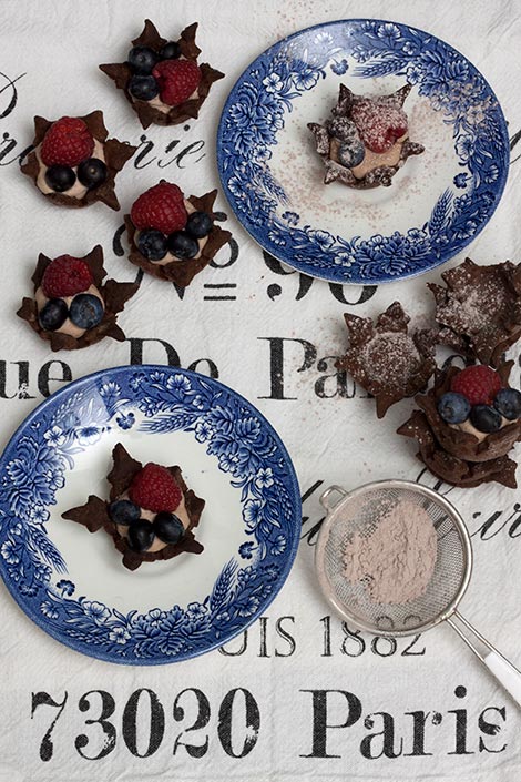 Paista 200-asteisessa uunissa noin 10 minuuttia. Anna pohjien jäähtyä vuoissa.