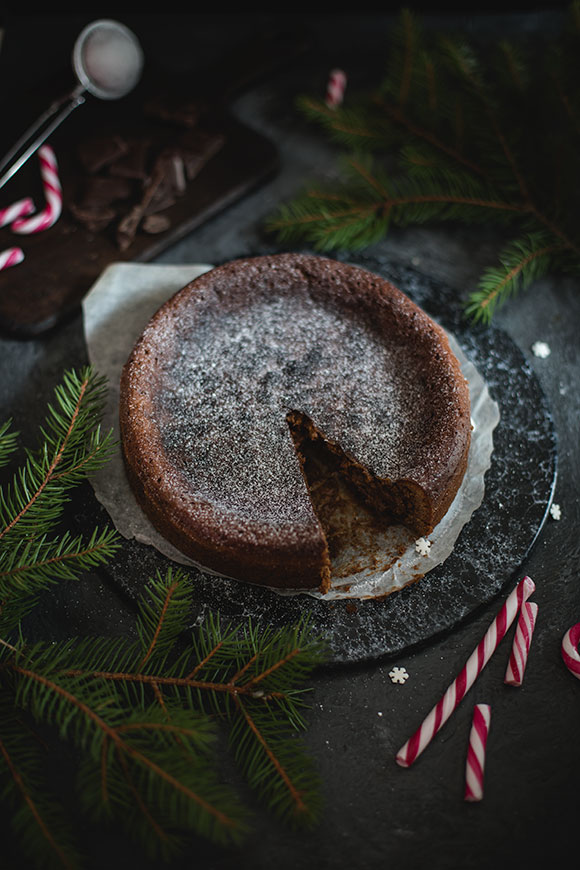 Podin pari päivää kovin akuuttia mutakakun himoa ja siihen oli viimein saatava parannusta. En ole vielä ehtinyt kovin paljon joululeivonnaisiakaan maistella, joten halusin yhdistää joulun mutakakkuun ja mikäs sen paremmin toimisi, kuin piparkakun makuinen mutakakku. Viime jouluna kehittelin aivan järjettömän hyvän piparkakku-brownien, jossa mehevän brownien sekaan upotetaan piparkakkutaikinaa. Nyt halusin kuitenkin yhdistää maut suoraan tuohon taikinaan, joten otin hieman eri lähestymistavan. Halusin tuoda piparkakun maut voimakkaasti esille, joten korvasin tavallisen sokerin siirapilla ja fariinisokerilla ja tumman suklaan maitosuklaalla. Kaneli ja maitosuklaa on muutenkin yksi lempimakuyhdistelmistäni, joten pääsin taas toteuttamaan sitä.
