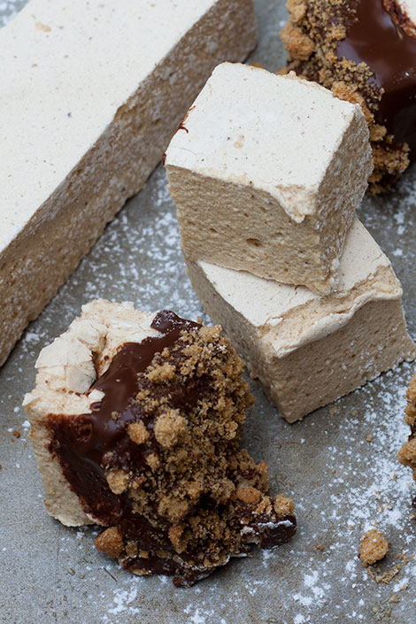 Kotona tehdyt vaahtokarkit vaativat hieman vaivannäköä, mutta ovat ehdottomasti sen arvoisia. Vaahtokarkkeissa on unelmaisen pehmeä rakenne ja maustamisessa vain mielikuvitus on rajana. Nämä jouluiset vaahtokarkit maustetaan piparkakkumausteilla ja kuorrutetaan vieläkin herkullisemmiksi suklaalla ja piparin muruilla.