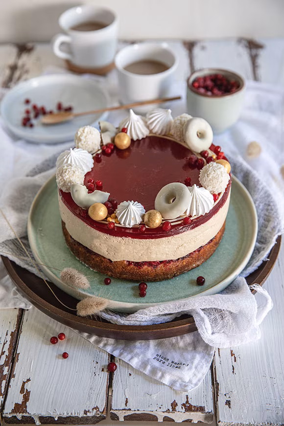 Pehmeä ja hieman kirpeä puolukkapiirakka on loistava pohja kuohkealle kinuskimousselle. Kakun viimeistelevä puolukkakiille tasapainottaa myös kinuskin makeutta ja antaa kakulle raikkaan loppusilauksen. Kinuskimousse on ilmavaa ja suussasulavan pehmeää, sillä siihen ei ole lisätty lainkaan liivatetta. Paksuksi vatkattu mousse pitää muotonsa oikein hyvin eikä se vaadi erillistä hyydyttäjää.