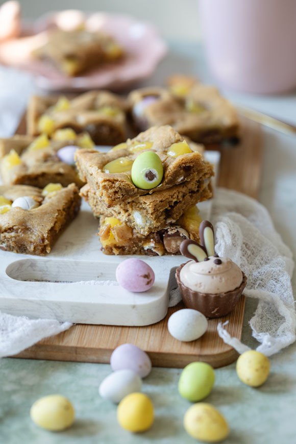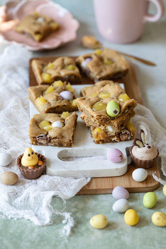 Tein viime syksynä tämän ihanan, kinuskisen cookiepellin, johon instagram-seuraajani rakastuivat. Nyt halusin tehdä cookiepellistä keväisemmän ja raikkaamman version, joten vaihdoin kinuskin sitruunaan ja suklaahiput pääsiäiseen sopivasti pieniin suklaisiin linnunmunakoristerakeisiin. Sitruuna toimii makeassa cookiessa aivan loistavasti raikastaen pohjaa. Päälle pursotettu kreemi on pieninä sattumina juuri täydellinen viimeistelemään nämä palat vastustamattomiksi herkuiksi.